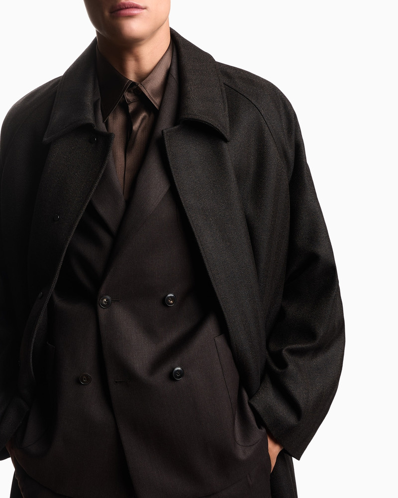 DOUBLE-BREASTED CHEVRON MÉLANGE WOOL COAT