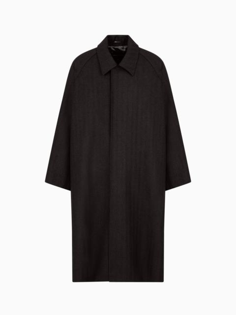 SINGLE-BREASTED COAT IN A CHEVRON WOOL TWEED