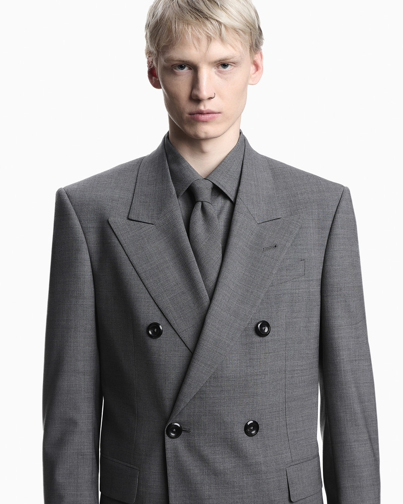 DOUBLE-BREASTED BLAZER IN VIRGIN-WOOL CLOTH