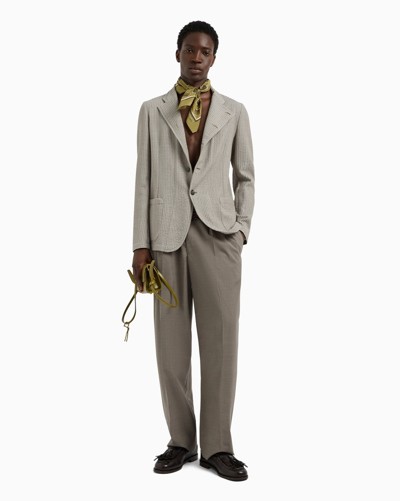 SINGLE-BREASTED JACKET IN TECHNICAL SEERSUCKER FABRIC