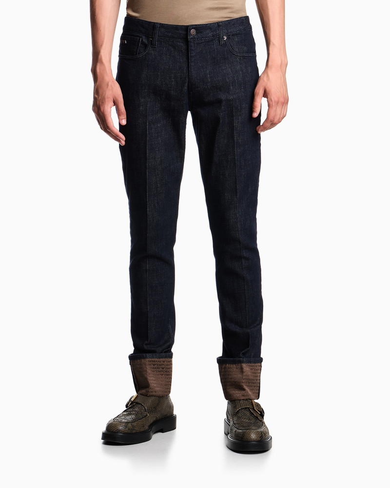 J06 SLIM-FIT JEANS IN RINSED STRETCH DENIM WITH LOGO TURN-UPS