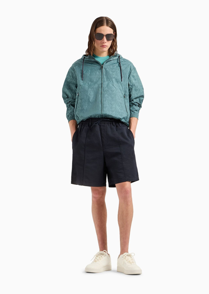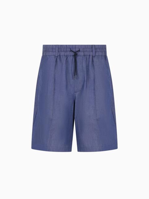 Linen-blend twill Bermuda shorts with crease and elasticated waist
