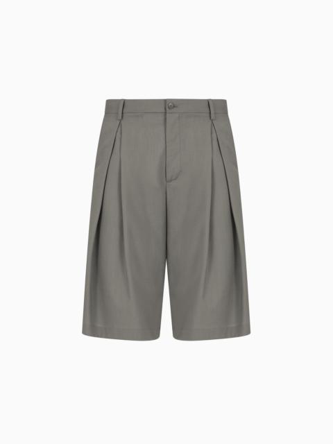 ASV super-light sustainable virgin-wool Bermuda shorts with godet pleats