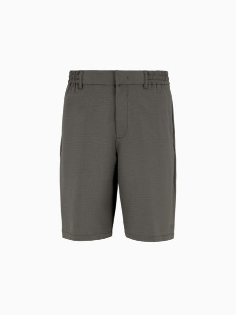 Technical seersucker, elasticated-waist chino Bermuda shorts