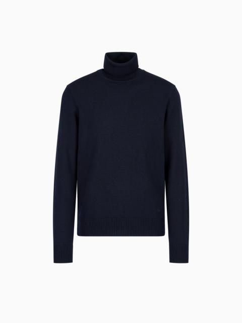 Mock-neck jumper in virgin wool with a micro-textured weave