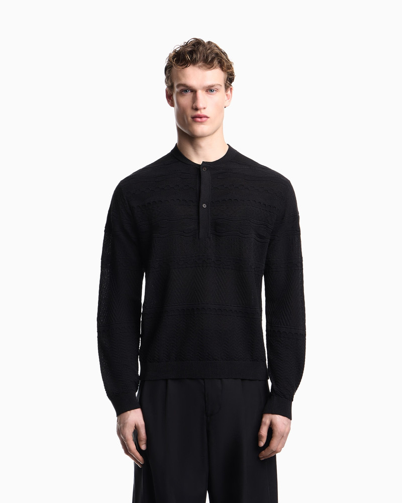 WOOL AND LYOCELL-BLEND POLO COLLAR JUMPER IN A PATTERNED STITCH