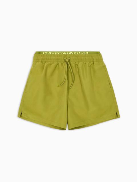 SWIM SHORTS WITH TWO-TONE EAGLE EMBROIDERY