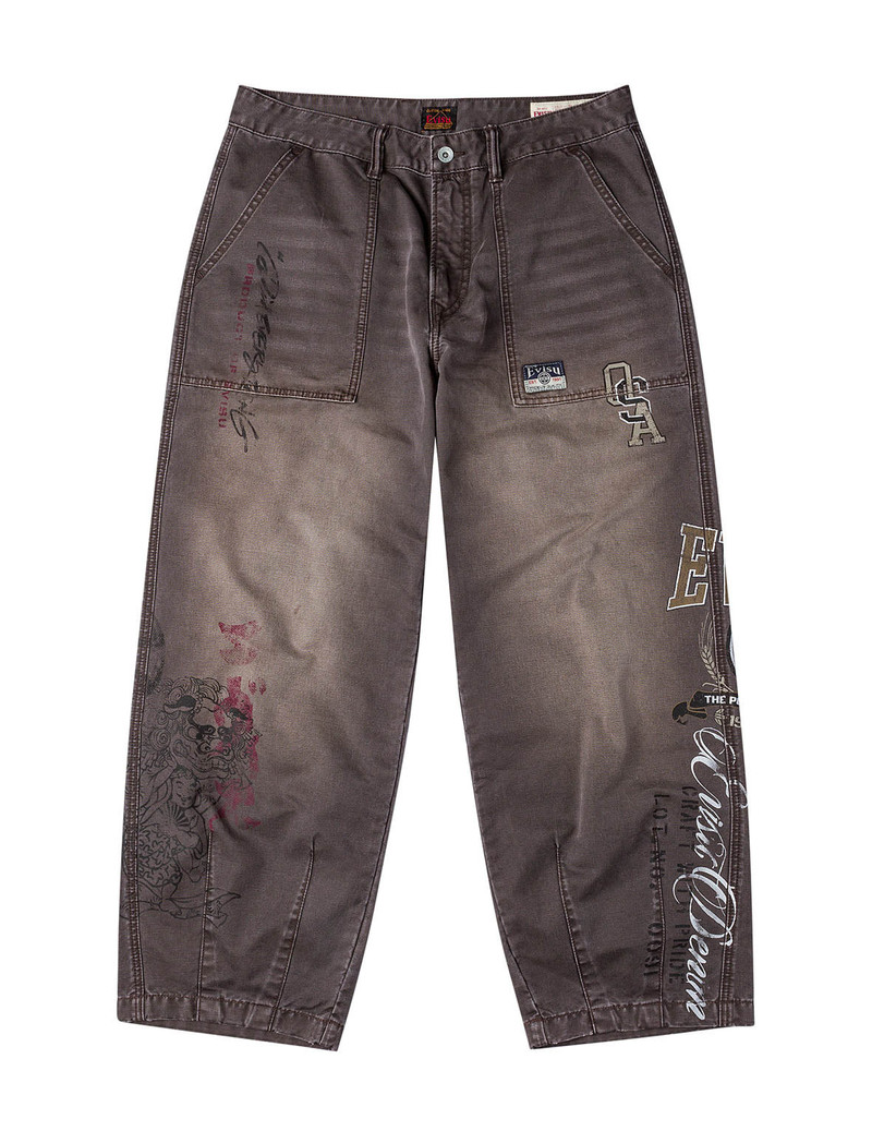 Explore the standout craftsmanship of EVISU pants, a premium segment within our diverse range of men's clothing. Each pair from EVISU showcases meticulous attention to detail, blending traditional Japanese artistry with modern streetwear aesthetics. Elevate your wardrobe with the unique designs and high-quality denim that embody EVISU's innovative approach.