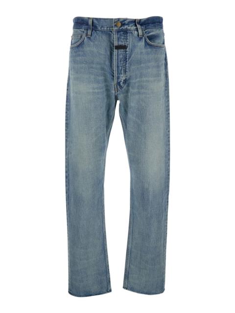 Fear Of God Men Blue Five-Pocket Jeans With Front Logo Patch In Denim Man