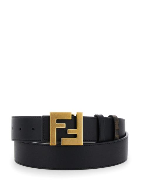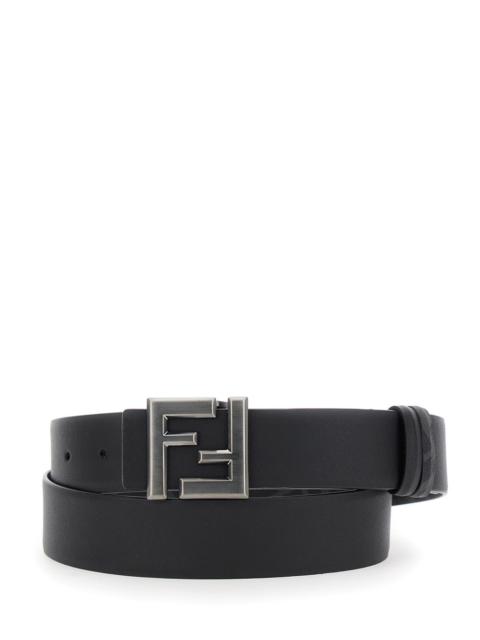 Fendi Men Black Leather Squared Ff Reversible Belt