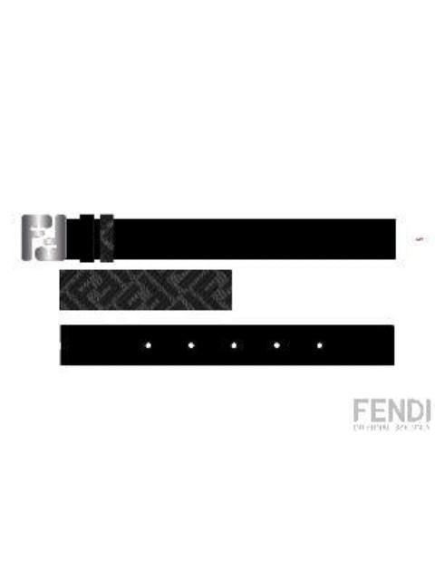 Fendi Men Black Belt With Metallic Ff Logo Plate On The Front And Ff Interior Motif In Hammered Leat