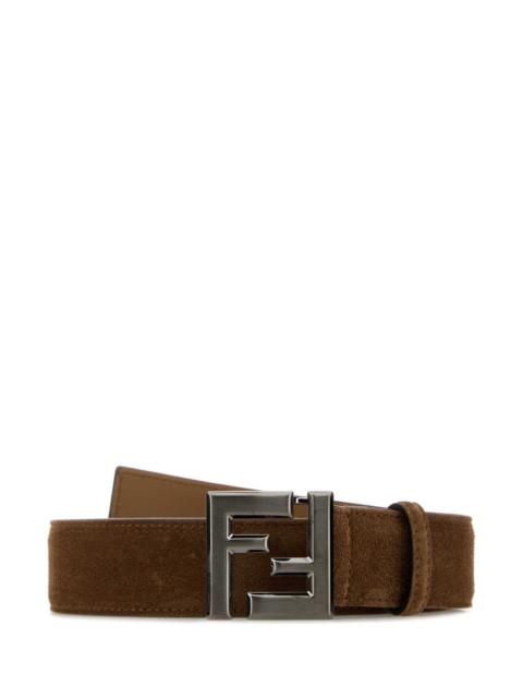 Fendi Men Brown Belt With Ff Plaque In Grained Leather Man