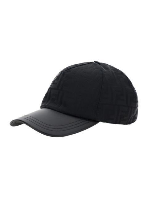 Fendi Men Black Baseball Cap With Curved Brim In Ff Canvas Man