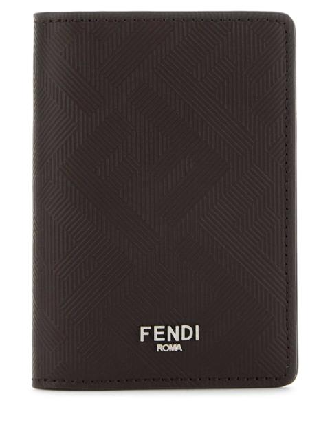 Fendi Men Dark Brown Leather Fendi Shadow Card Holder