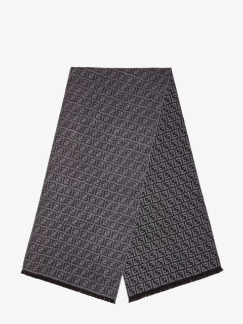 Fendi Men Blue Scarf With All-Over Ff Motif And Frayed Hem In Wool Woman