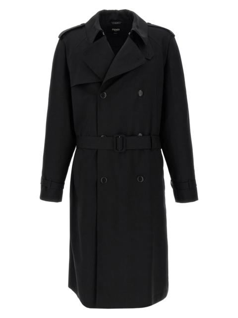 FENDI Monogram Zucca Black Trench Coat Long Jacket