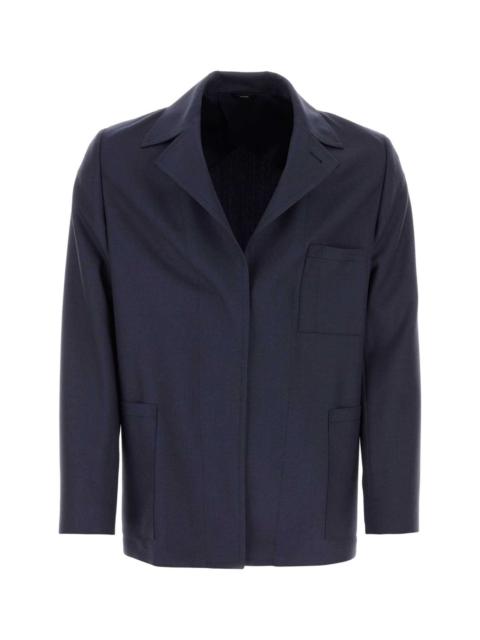 Fendi Double-Breasted Jacket In Midnight Blue Virgin Wool Men