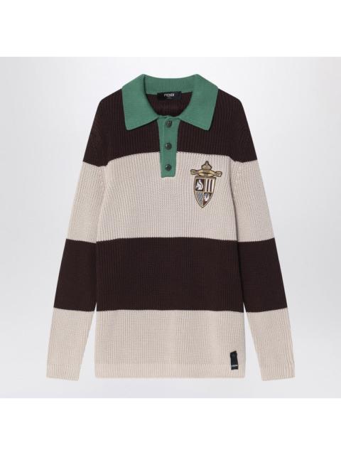 Fendi Knitted Cotton Polo Shirt With Brown And Beige Stripes Men