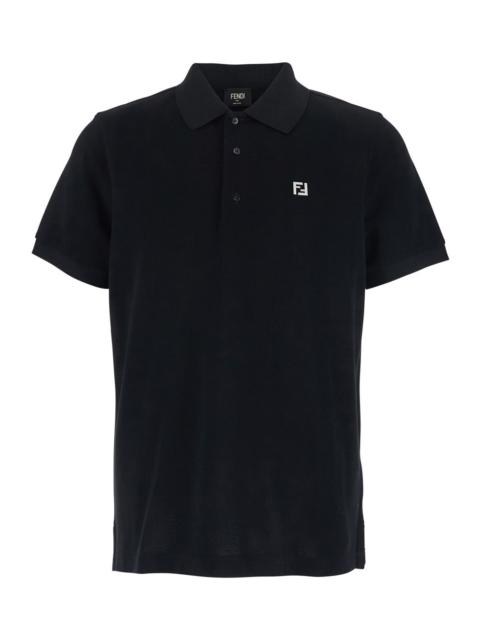 Fendi Men Black Polo Shirt With Metallic Ff Logo On The Front In Cotton Pique Man