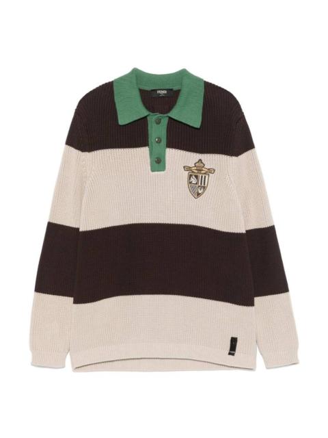 Fendi Men Black Long-Sleeve Polo Shirt With Classic Collar And Ff Plaque On The Front In Wool Man