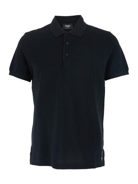 Fendi Men Black Polo Shirt With Logo Patch On The Front In Cotton Pique Man