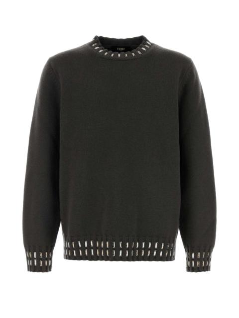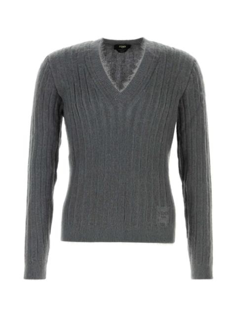 Fendi Men Dark Grey Stretch Mohair Blend Sweater