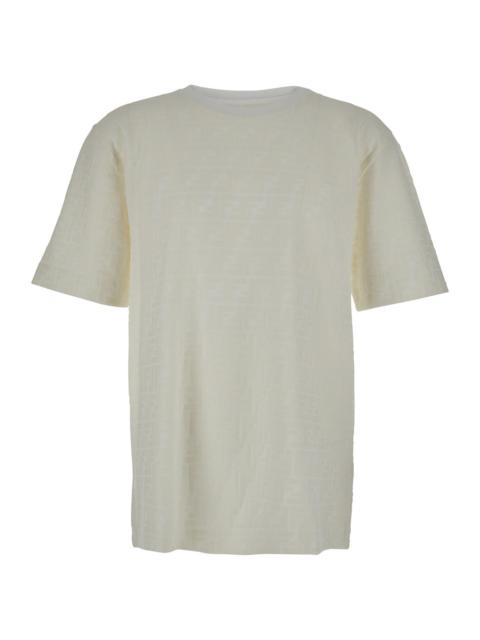 Fendi Men White Crewneck T-Shirt With Tone-On-Tone All-Over Ff Motif In Cotton Man