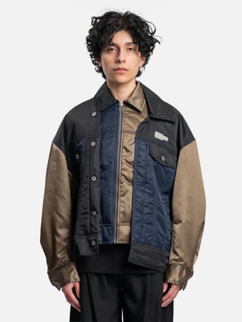 BROWN & BLUE DECONSTRUCTED DOUBLE PANELED JACKET