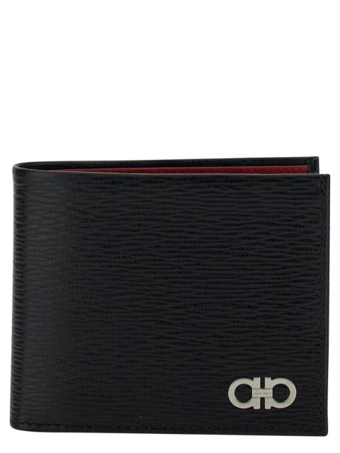 Ferragamo Men Revival Gancini Black Wallet In Textured Leather Man Ferragamo