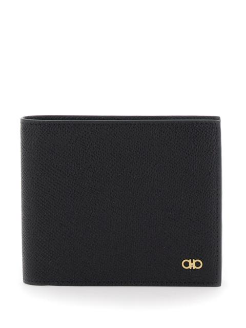 Ferragamo Men 'Micro Gancini' Black Bi Fold Wallet With Logo In Hammered Leather Man