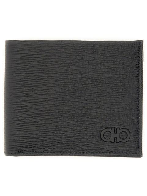 Ferragamo Men 'Florence' Black Bi-Fold Wallet With Logo Lettering On The Front In Leather Man