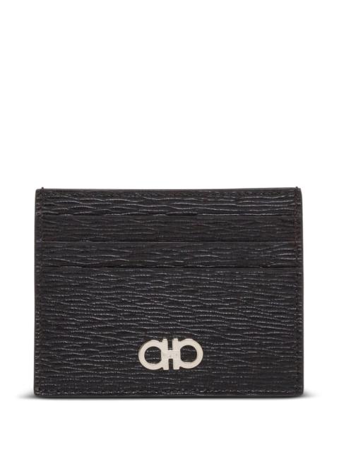 Ferragamo Men Salvatore Ferragamo Man's Revival Black Leather Card Holder With Gancini Buckle