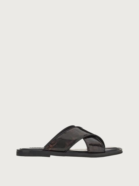 Step into sophistication with Ferragamo sandals, featured in our exclusive men's shoe collection. Each pair of Ferragamo sandals is crafted with precision, balancing timeless elegance with modern comfort. Perfect for the discerning gentleman, these sandals boast superior quality materials and innovative designs.