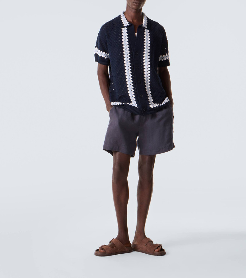 Roberto Camp-Collar Printed Linen Shirt Beige