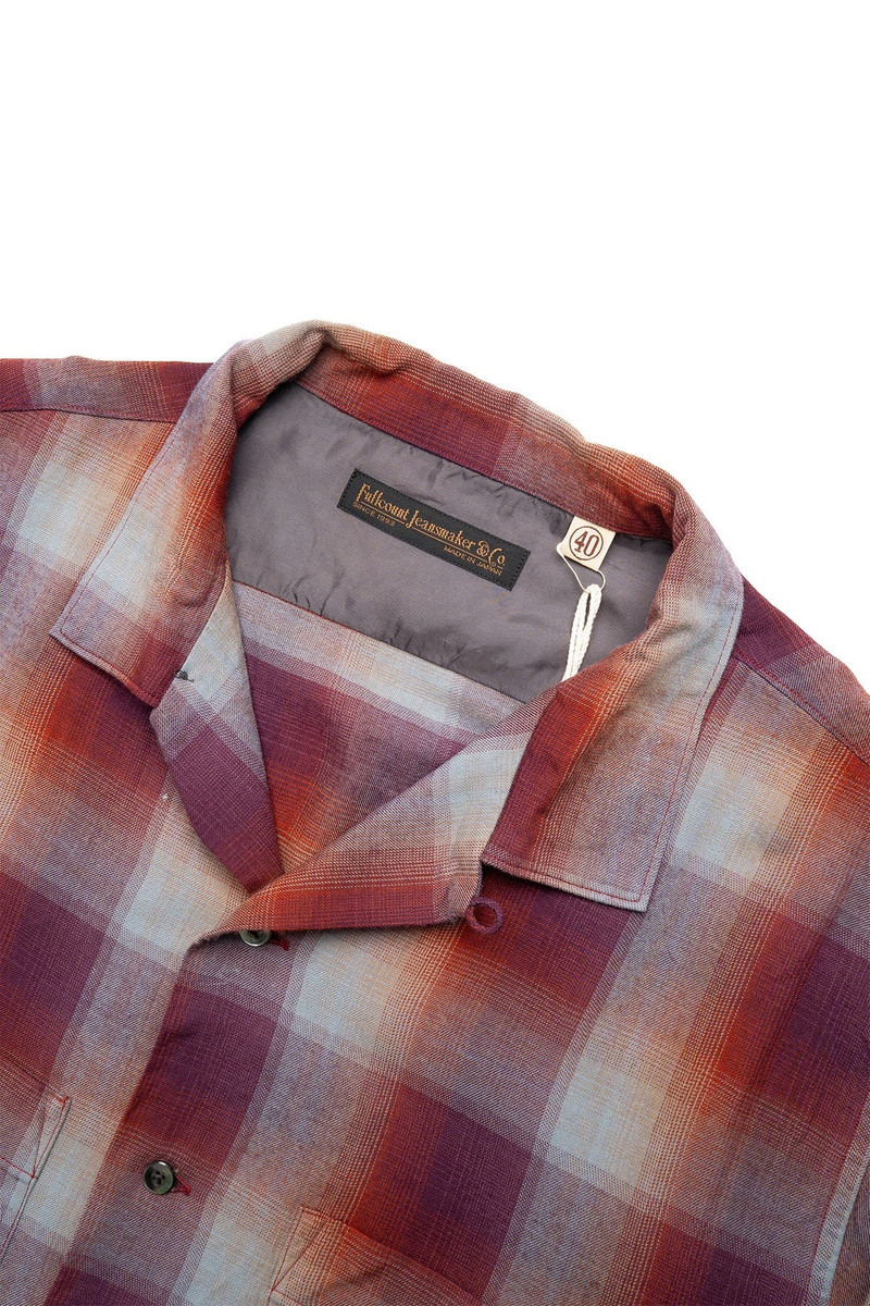 Rayon Check Open Collar Shirt - Burgundy