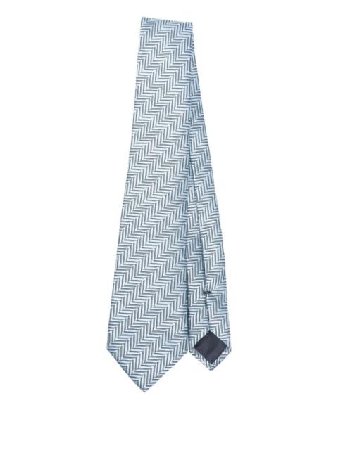 Giorgio Armani Men Grey Chevron Jacquard Silk Tie