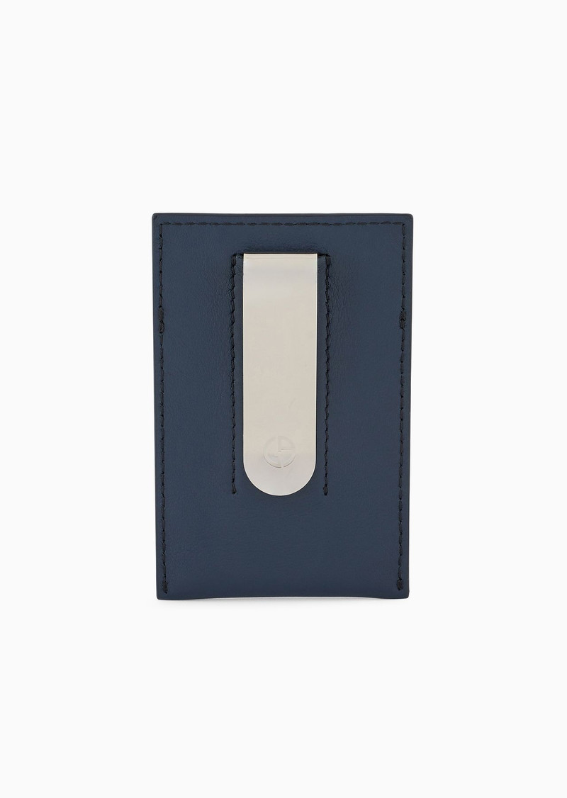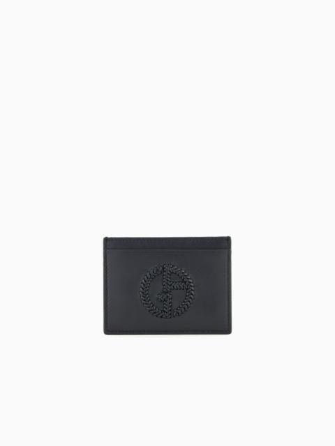 Nappa leather card holder with embroidered logo