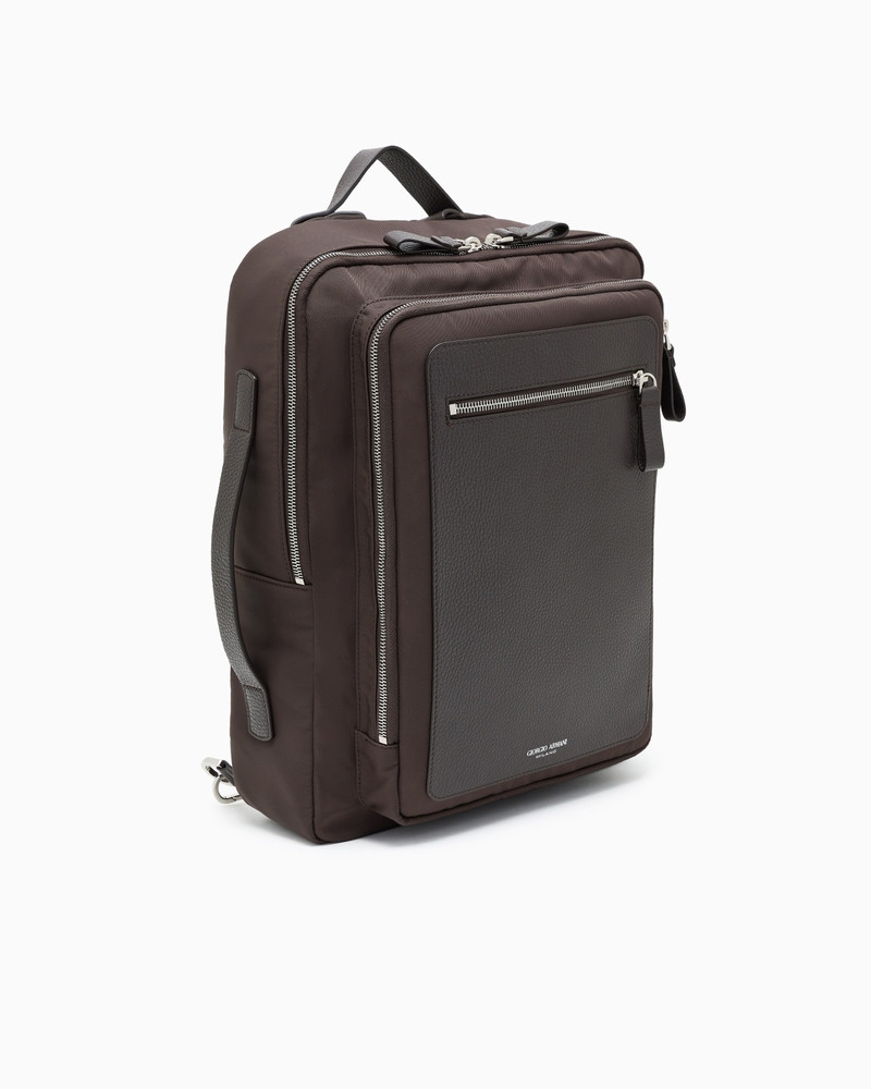 ASV NYLON AND PEBBLED-LEATHER BACKPACK