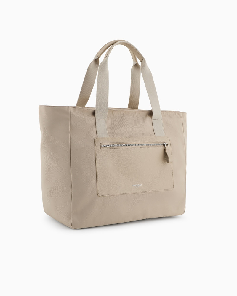 SMALL SHOPPER BAG IN RECYCLED NYLON AND PEBBLED LEATHER