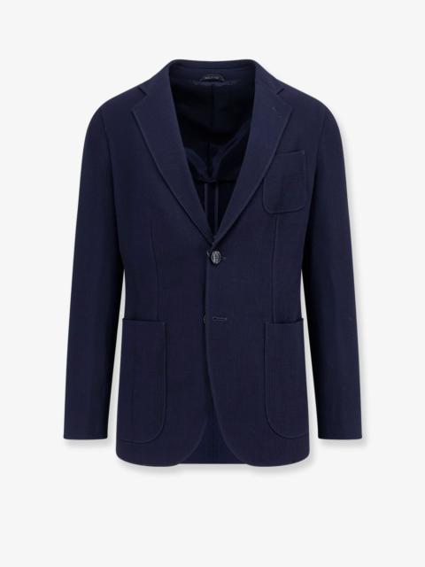Giorgio Armani Men Blue Wool Crepe Single-Breasted Jacket