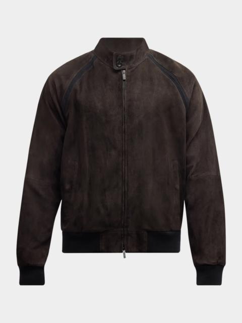 1980s- Giorgio Armani- Embroidered Logo Suede Leather Bomber