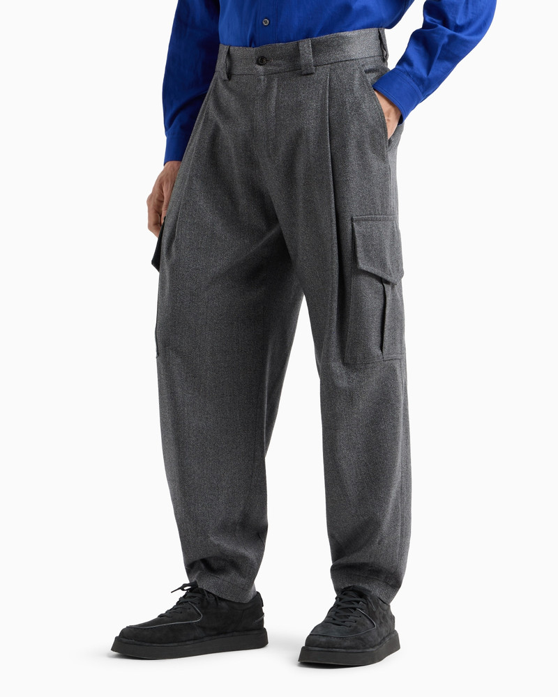 ONE-PLEAT CARGO TROUSERS IN A WOOL BLEND WITH METALLIC THREAD