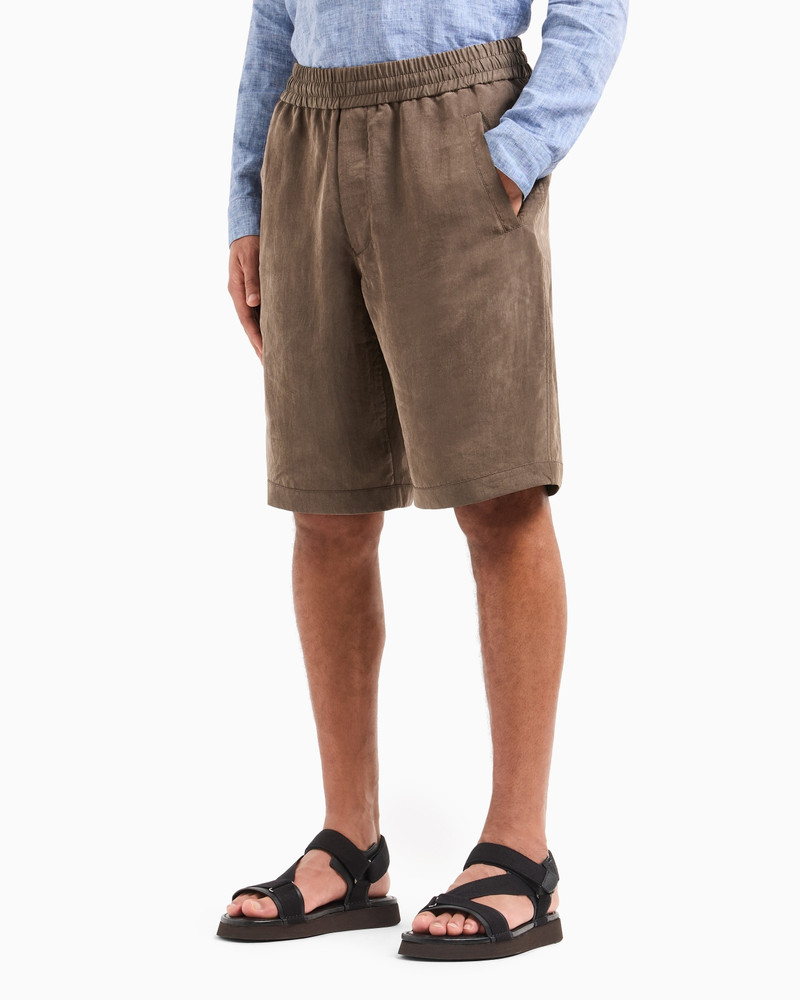 LINEN CANVAS FLAT-FRONT BERMUDA SHORTS