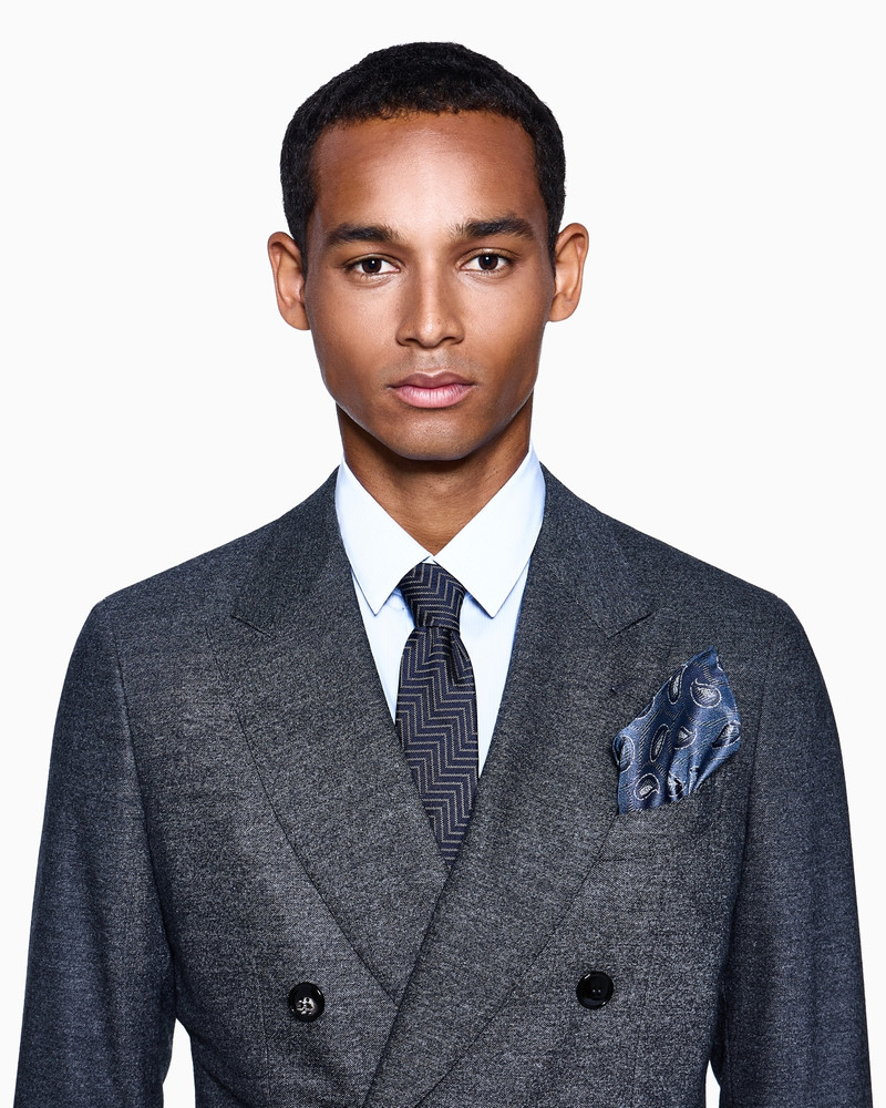 SINGLE-BREASTED SOHO LINE SUIT IN TWO-TONE ARMURE WOOL
