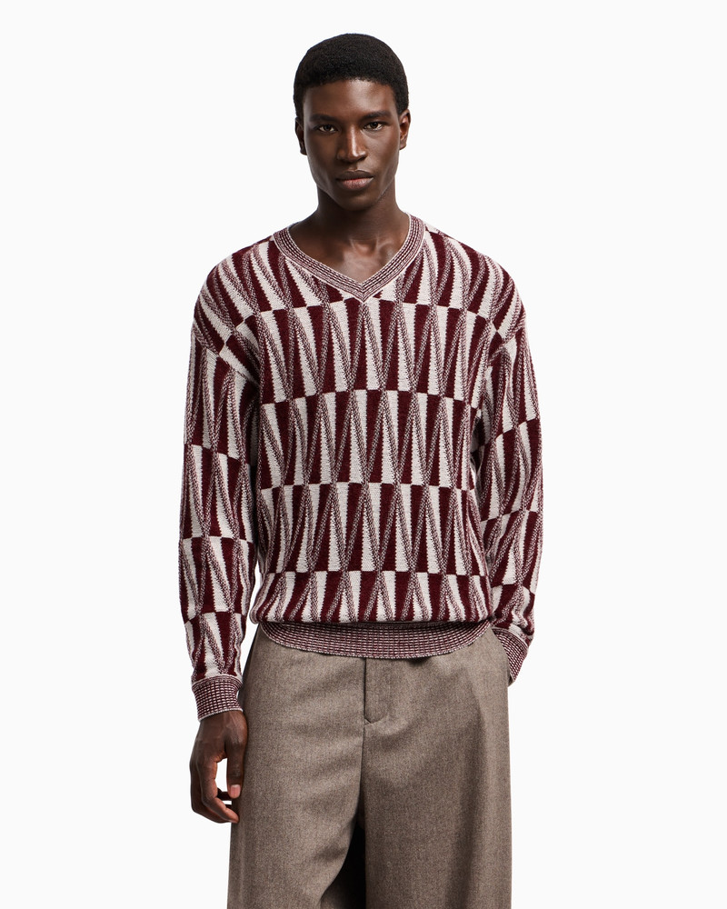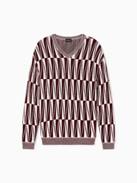 V-NECK JUMPER IN CASHMERE, SILK AND VISCOSE JACQUARD