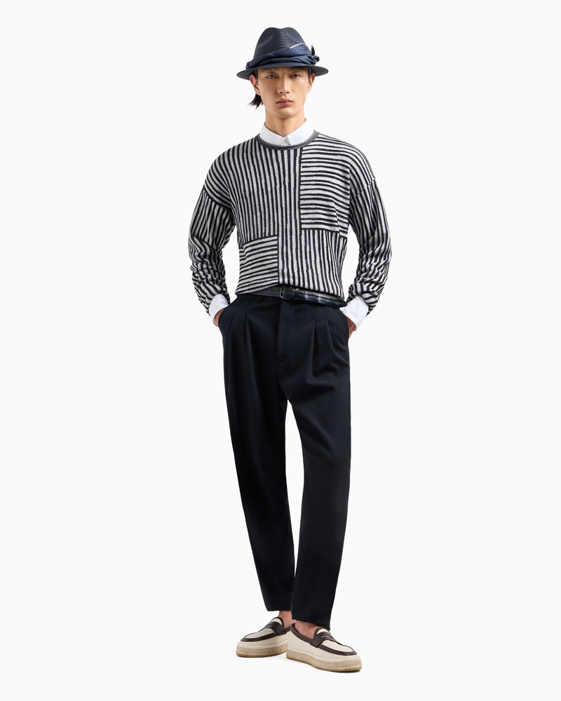 CREW-NECK JUMPER IN JACQUARD VIRGIN WOOL AND CASHMERE