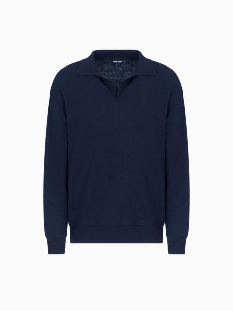 MICRO JACQUARD VIRGIN WOOL AND VISCOSE POLO JUMPER