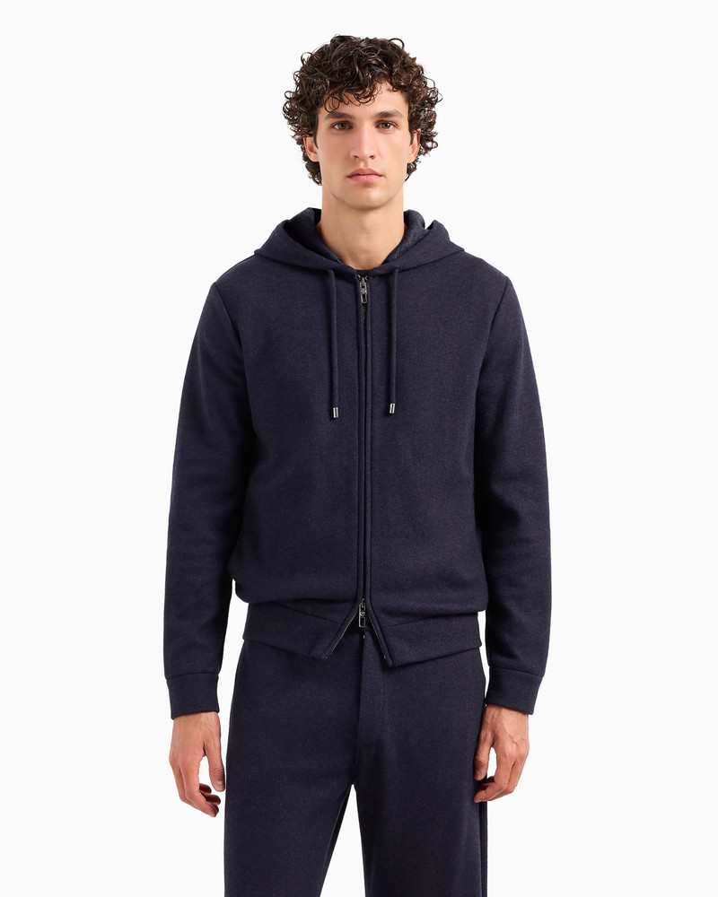 Giorgio Armani Vicuña sweatshirt with hood in cashmere and vicuña