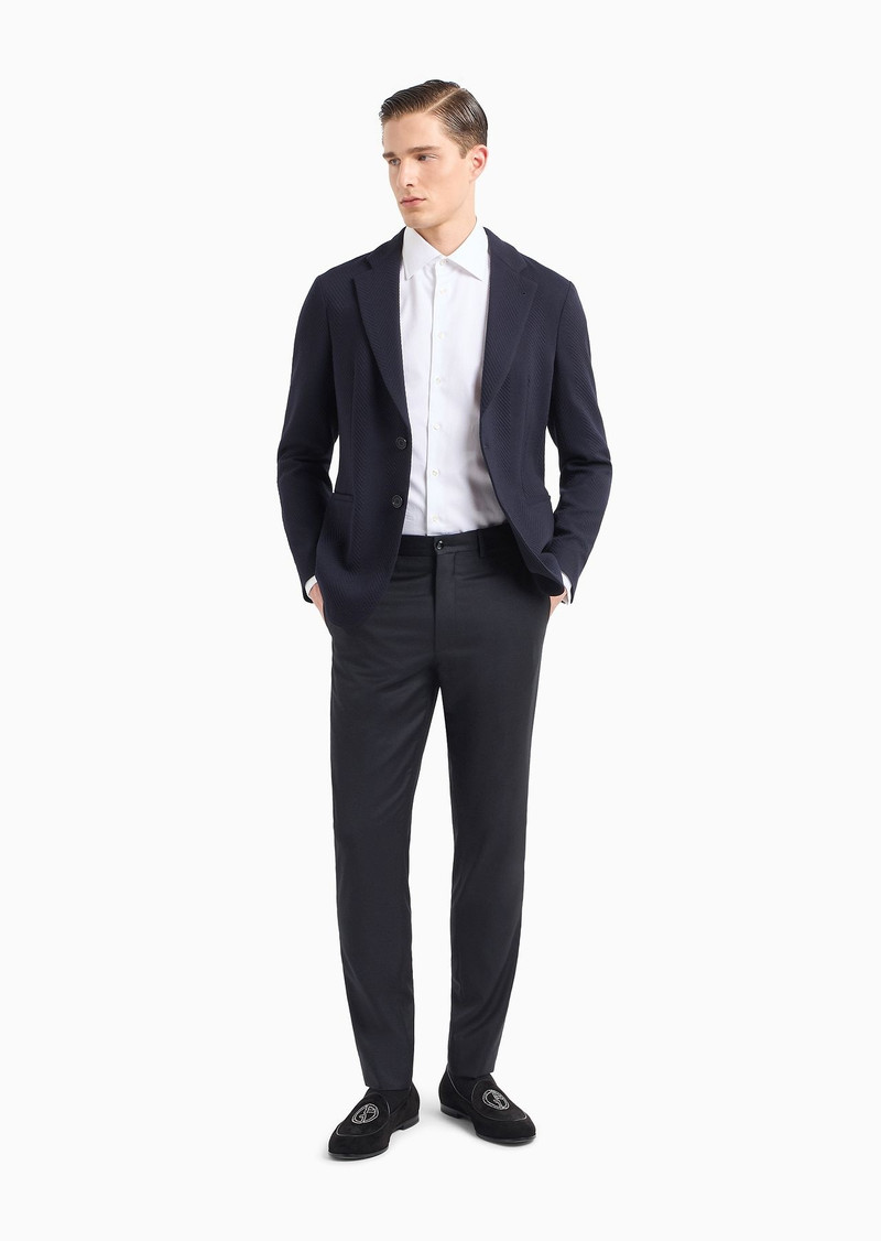 Single-breasted jacket in a chevron jacquard stretch-wool blend