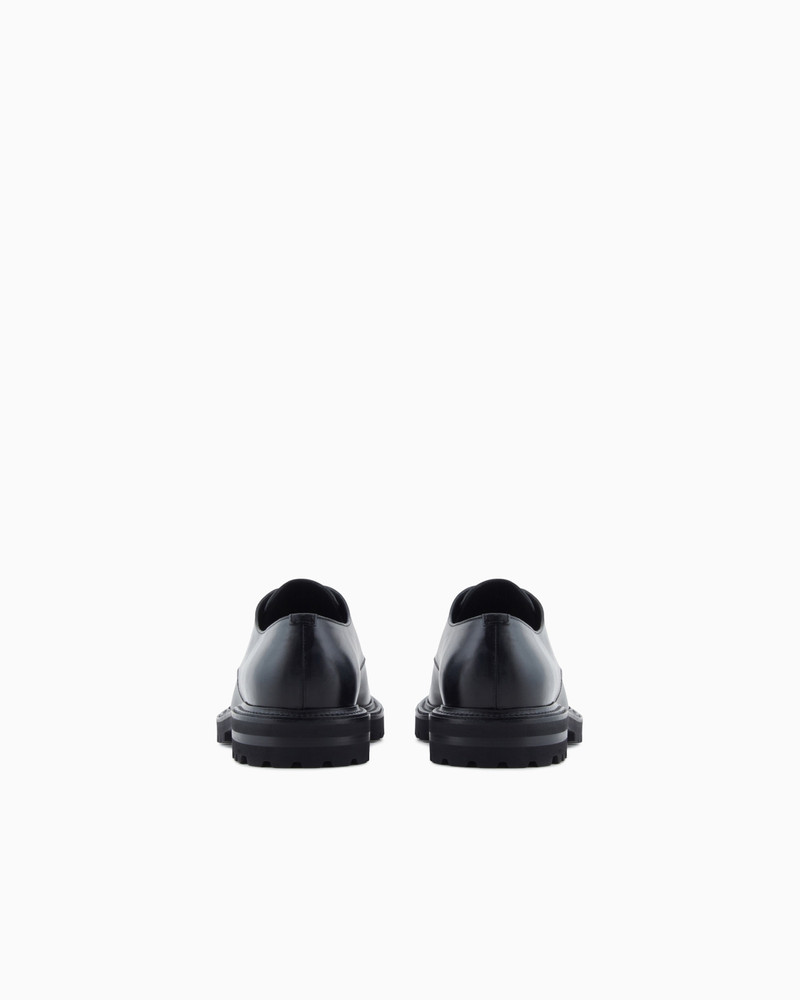 Mens Grained Calf Leather Rubber-Sole Derby Shoes